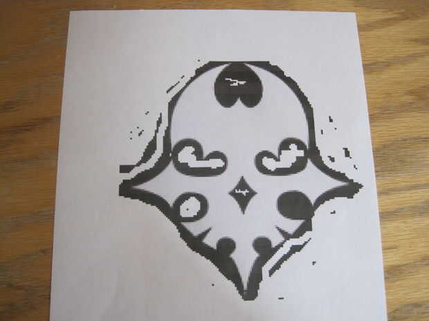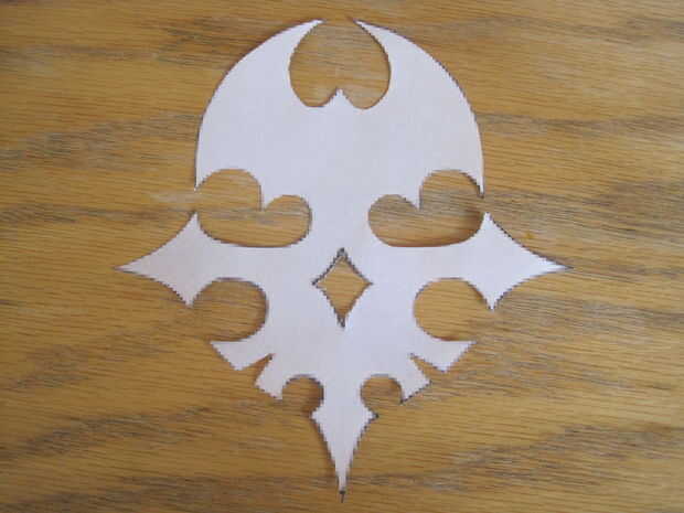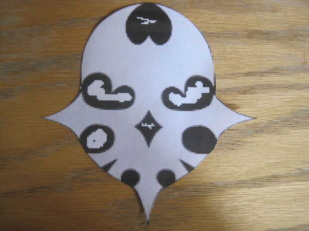Además de todo esto se necesita imprimir y cortar un modelo de papel del símbolo de la muerte. Se proporciona una muestra de que en la última foto. Sólo asegúrese de que el cráneo, de arriba a abajo, es aproximadamente de 8"