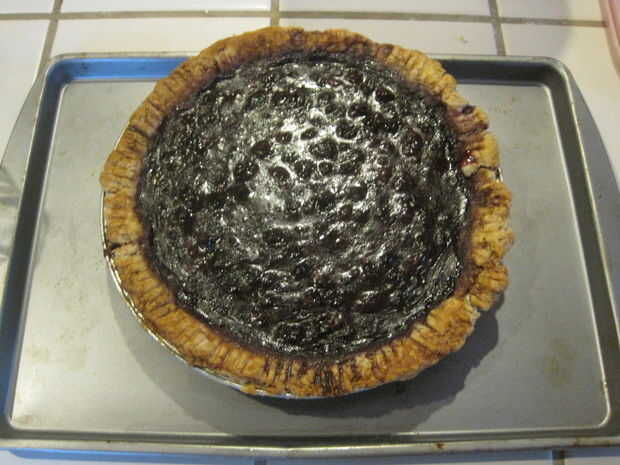 Ahora... nuevamente ausente. No toque, corte o siquiera pensar en el pastel de por lo menos 1 hora. Tentador que es allegarse su camino en este pastel, es necesario este tiempo para tranquilizarse y dejar que los jugos a solidificar. Si se corta, no sólo quemará la boca pero corre el riesgo de perder los preciosos sabores de arándanos.