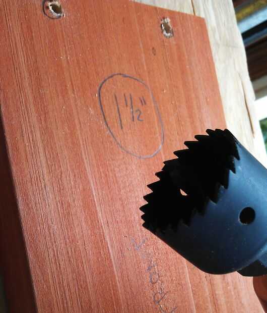 Un serrucho es ideal para 1 1/2" de apertura. Si no, rompecabezas o cualquier otro medio tiene disponible para hacer un orificio de 1 1/2" en un pedazo de madera.