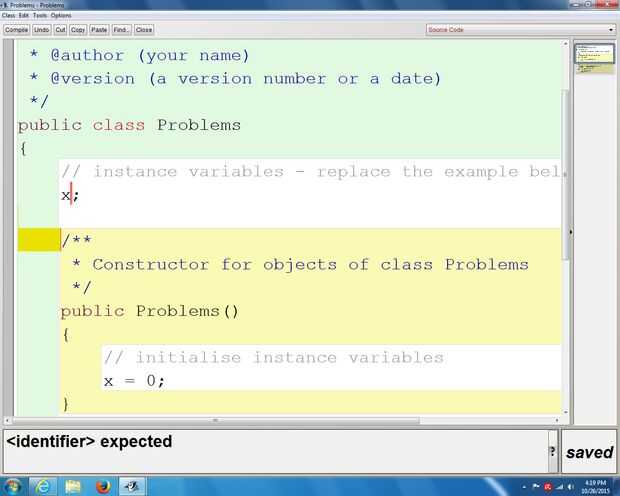 El, no ese error muy común, un programador podría hacer, es hacer una instancia variables sin parámetros (no pública, no doble, no int, etc....). El error (esperado) nos dice que la variable de instancia ("x") es desconocida. El programa no sabe si "x" es un número o una letra. No sé si otras personas pueden verlo o no.