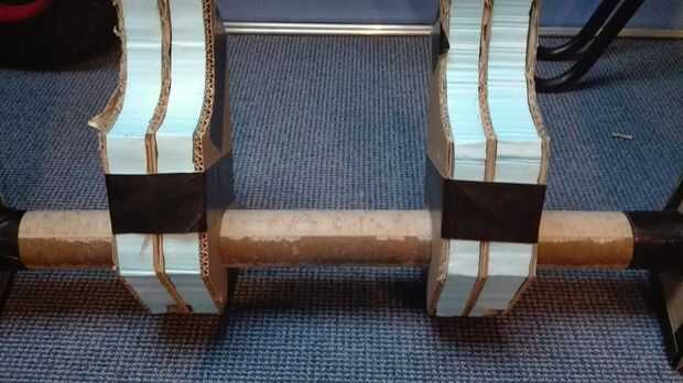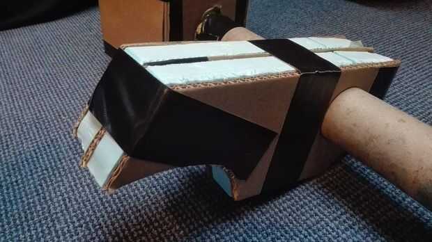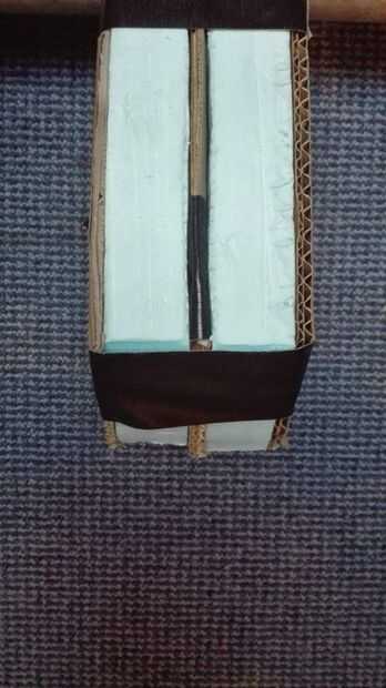 1. Snij de vorm uit van fig. 1 nos hebben er zes puja van karton, en 4 uit PU-schuim met een dikte van 30mm
