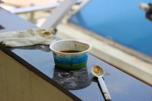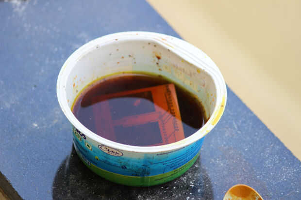 # Tenga cuidado! Se trabajará con productos químicos corrosivos, utilice guantes mientras manejo y desgaste de ropa vieja.