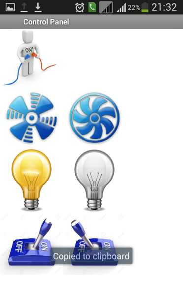 Grandes iconos de los controles respectivos: la aplicación tiene botones grandes donde hay que tocar para los aparatos de control.