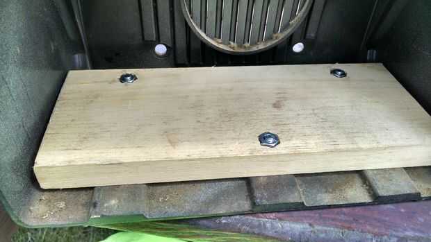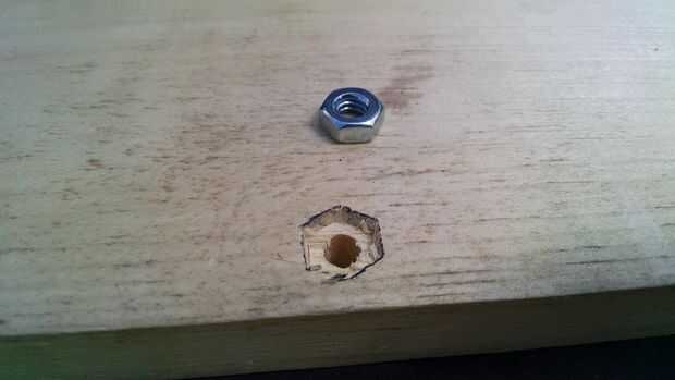 Cortar la base para caber en la cabina de radio y utilizar tornillos y tuercas que empotrados y pegados en la madera para no tener que poner una llave en el otro lado entonces pegan separadores en la parte inferior para sostener la placa trasera