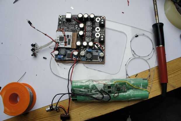 Ahora todo debería funcionar! Trate de enchufar el cargador, apagarlo en/etc.. Conecte los cables del amplificador a los altavoces y darle una escucha para asegurarse de que todo funciona OK. Si es así, luego continúan pintando la caja y el panel frontal e instale nuestro electrónica.