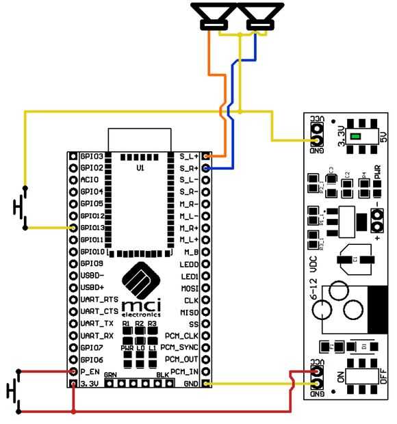 para el encendido y el cambio de tema. Puedes agregar otros pulsadores para pausar y controlar el volumen.