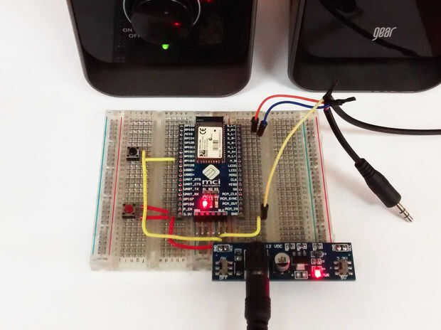 Para este caso se usará parlantes se alimentan desde un puerto USB donde pelamos los cables y los insertamos en el protoboard.