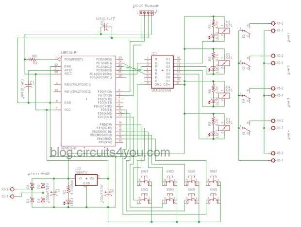 Bluetooth basado en automatización del hogar, proyecto permite controlar aparatos eléctricos utilizando su teléfono móvil android. Consiste en el microcontrolador ATmega8, módulo Bluetooth HC-06, Relays.There son muchos Inicio sistemas de automatización disponibles en nuestro mercado. La mayoría de ellas es simples aparatos electrodomésticos sistemas de control como DTMF controla electrodomésticos, control remoto basado en electrodomésticos control RF basado en control de aparatos electrodomésticos. nos va a discutir sobre Bluetooth basado en casa u oficina aparatos de Control (inicio de automatización).
