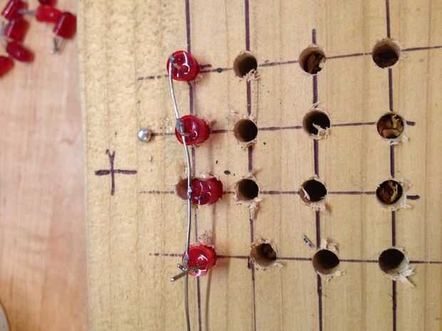 Ahora vamos a empezar a soldar un cable de conexión horizontal de los cables de positivo en cada fila (me lo quitaron el otro LED para mayor comodidad)