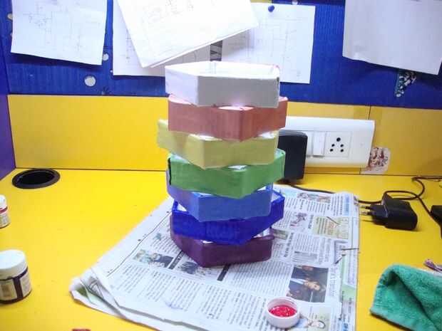 El siguiente paso es la lámpara de color con todos los siete colores del arco iris. No necesitas comprar los siete colores pero sólo necesidad-rojo, amarillo y verde. Puede hacer el resto de cuatro colores los colores arriba en una cierta proporción de la mezcla. Color de la lámpara en el VIBGYOR orden de abajo hacia arriba. Consulte las instrucciones siguientes para hacer todos los colores mezclando.