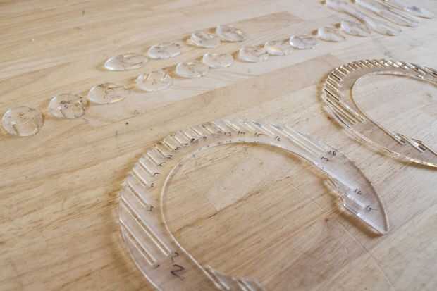 El archivo del visor es grabado al agua fuerte, entonces corte de 1/8 acrílico claro.