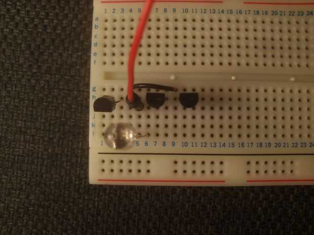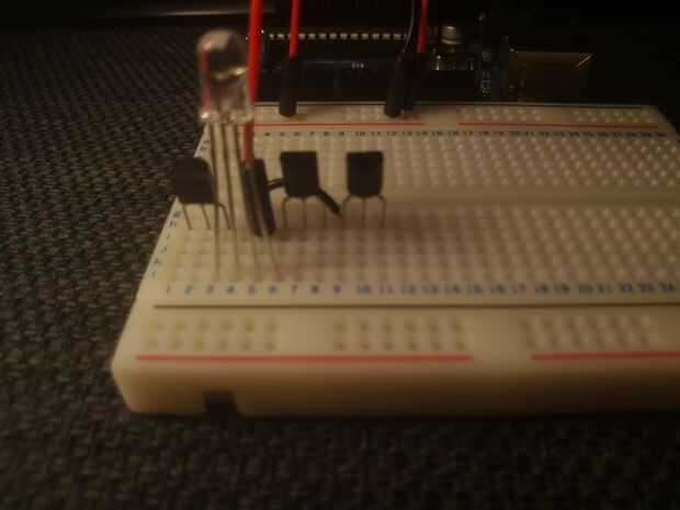 Conectar la pierna del ánodo de transistores a lo LED, uno a cada pierna/color del LED.