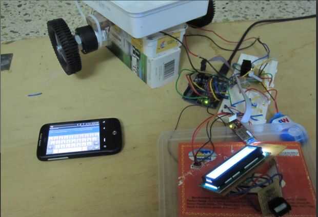Los mensajes se envían a través de una conexión bluetooth entre el remitente y el bot. Para mi uso, utilicé un HTC WIldfire que ejecuta la aplicación Blueterm enviar comandos serie bot. El módulo bluetooth que utiliza en el bot es Bluesmirf Gold, que tiene una tasa de baudios predeterminada como 115200. No tengo un cable FTDI para cambiar la velocidad en baudios. El ajuste de la tasa de baudios no importa mucho pero lo que es la velocidad en baudios del módulo, debe configurar un puerto serie de la misma velocidad en baudios en el código de arduino. De lo contrario obtendrá Estados indefinidos y el bot no funciona como quería < imaginar R2D2 grito >.