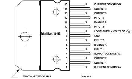 El L298 no viene en un estándar DIP (dual inline package). Por lo tanto no puede montarlo en un protoboard. Se