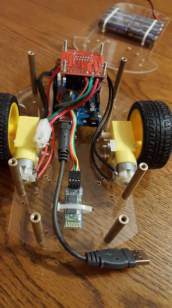 Utilizando 1Sheeld, mando un Arduino powered vehículo con el acelerómetro en tu Smartphone/Tablet.Paso 1: lo esencial Se requieren los siguientes elementos, o equivalente.1) cualquier Arduino powered plataforma del vehículo. En la foto es el Thumper