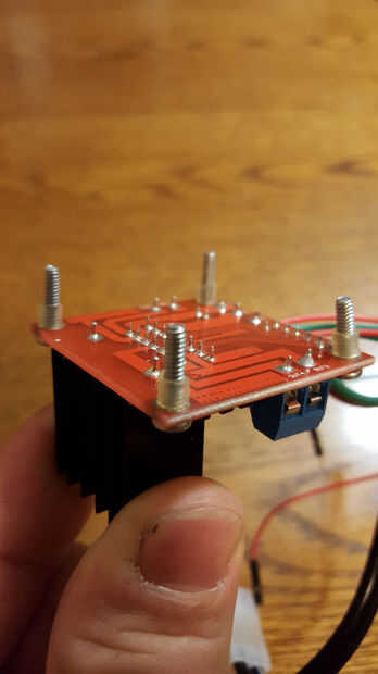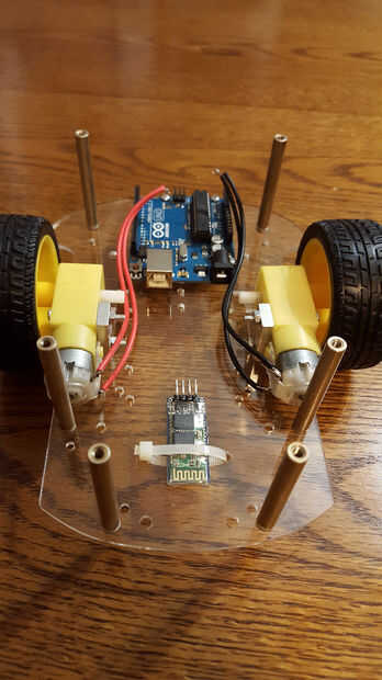 Para montar el Arduino y el controlador del motor, usé tornillos y tuercas y cortar tubería del poliuretano de pequeño diámetro para espaciadores levantar un poco.