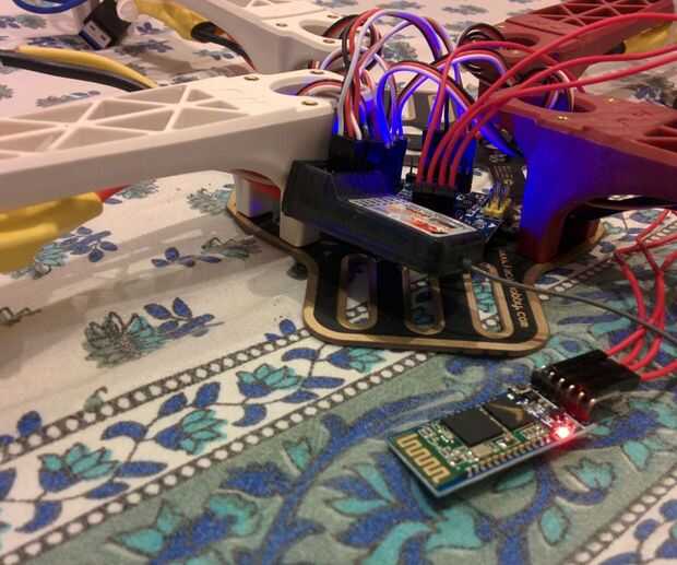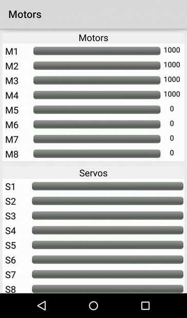 Mediante la aplicación de Android, usted puede comprobar si todas las conexiones son adecuadas y si el módulo Bluetooth está trabajando perfectamente con el Quadcopter. Como se muestra en las fotos que adjunto, he podido recoger valores de PID, así como el estado de todos los 4 motores.