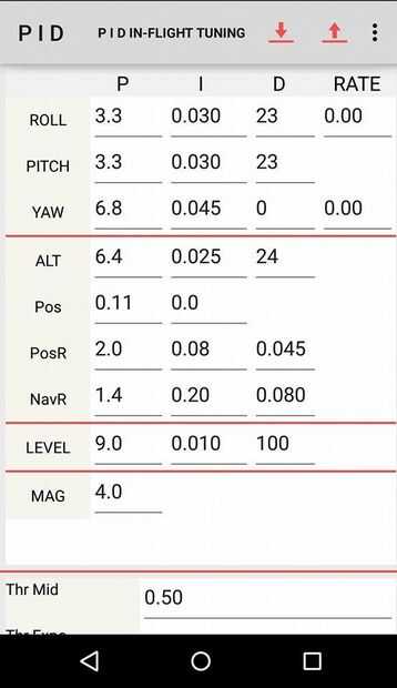Usando la aplicación para Android, que ahora podemos comunicarnos con nuestro tablero con el adaptador Bluetooth y el receptor no sólo ajustar la configuración de la ESC, sino también ver la sensibilidad de la Junta. Como se ve en la figura, los valores pueden modificarse fácilmente.