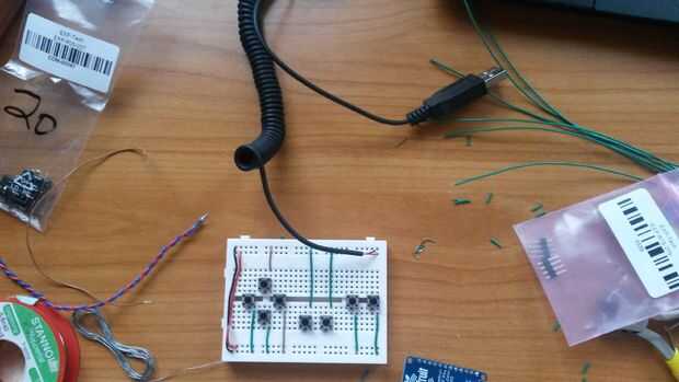 Para el prototipo que yo solo corte y viejo USB cable de alimentación y soldadas a un jefe del pin que se conecta a la tabla de espigas.
