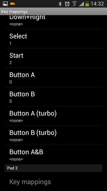 Entonces empecé mi emulador de NES, en mi caso fue la aplicación Nesoid y configurar los ajustes de entrada claves según los canales de entrada de la Bluefruit.