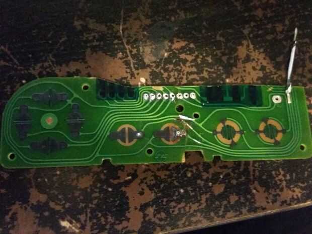 Ahora porque teníamos que cortar a través de los rastros de B, comienzo y botones selectos, no podemos usar los agujeros donde viruta vino hacia fuera. Necesitamos soldar directamente a la Junta.