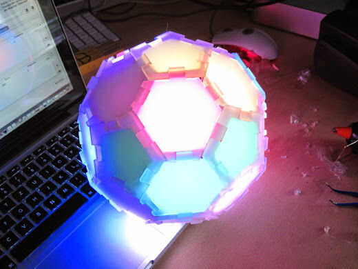Aquí, las pirámides se pegan justo encima de cada lado y otra vez el led en la parte superior.