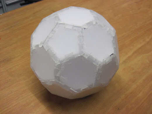 Ahora "papel de lija" (yo usé un proxxon y dremel con una lija primera, corundom herramienta más tarde para el trabajo más fino) los bordes para suavizarlos. Se fue la parte menos divertida de todo el proceso de construcción. Si le hago eso otra vez, voy a intentar hacer un soporte para los lados, donde puedo cortar cada lado biselado con el cortador del laser: hay cierto ángulo entre 5- y 6-borde y también otro cierto ángulo entre bordes de 6, que corresponden al ángulo con que el borde debe "quienes" para obtener una conexión suave entre dos azulejos.