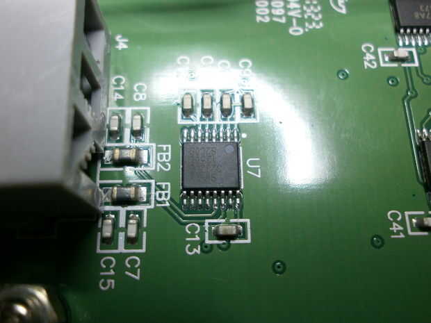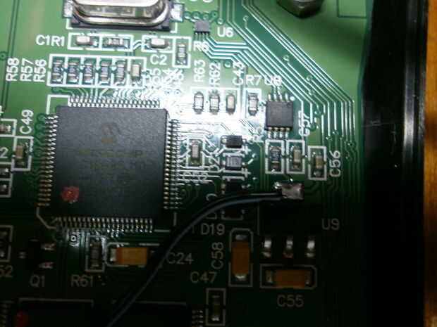 La Junta utiliza pernos R1OUT, T1OUT, R1IN y T1IN en SP3232 para la interfaz y RX1 (pin38) y TX1 (pin37) clavijas PIC18F85J10 MCU.