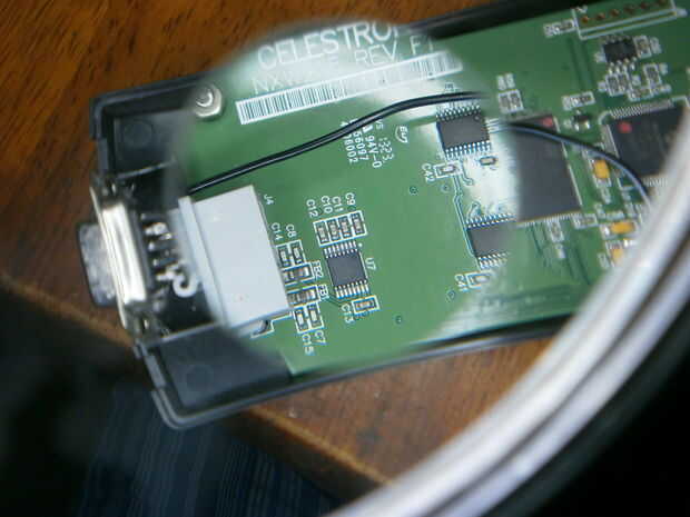 Señales en el conector inferior HC es realmente de nivel RS-232. Usted puede acceder a él mediante un conector RJ-22. Celestron vende este cable que permitirá a un PC controlar su telescopio y actualizar el firmware de la HC.
