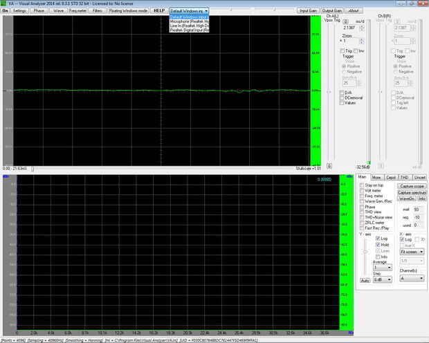 Ahora que tienes todas las aplicaciones instaladas y funcionando, abra Visual Analyzer. Usted necesitará seleccionar el micrófono como"entrada" en la parte superior y marque la casilla "hold" en la pestaña "principal" en la esquina inferior derecha.