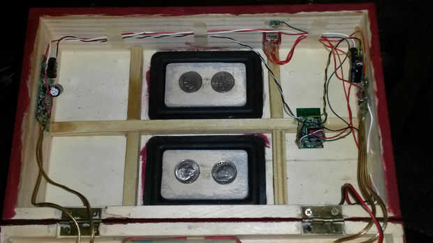Hay más de una forma de diseño de altavoces. Si tenemos en los controladores de parámetros Thiele/Small, sería posible calcular el tamaño del recinto y Puerto dimensiones con cualquiera de las gratis calculadoras de caja de altavoz. Esa información no está disponible, estoy usando el TLAR (que se ve sobre derecho) método. Elegí una caja que parecía de un tamaño razonable y funciona.
