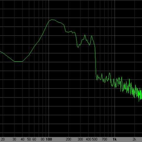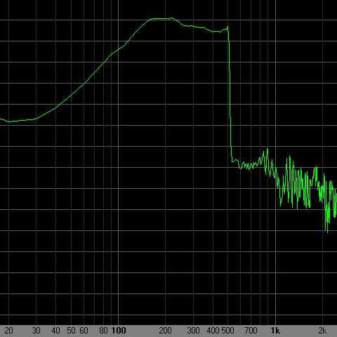 El punto más alto en el gráfico indica la resonancia. Esto debe ser alrededor de 200Hz para estos altavoces y 100Hz para la PR. Si los altavoces resuenan más bajo, el PR puede ajustarse más bajo. Puesto que el PR es impulsado indirectamente por los altavoces, disminuirá la salida de resonancia o "boost" con frecuencia.