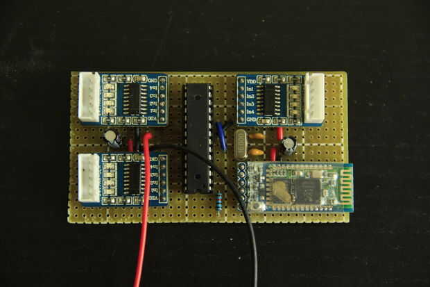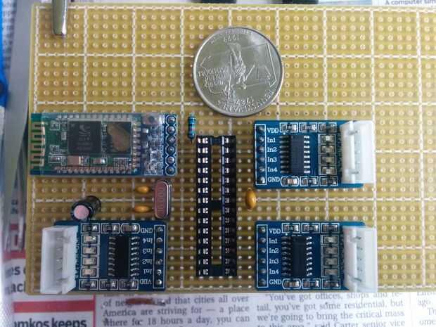 Lo primero que hice con el módulo bluetooth y controladores de motor paso a paso fue desoldar las cabeceras hombres dobladas y soldadura de cabezales recto machos en la parte posterior de la Junta. Esto les permitirá ser plana en la placa perforada.