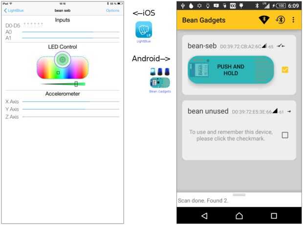 En cualquier momento, puede comprobar que el grano está en marcha, después de accionar con una célula de la moneda, o con el regulador de voltaje, cambiando su RGB LED, usando Luz azul de la aplicación de iOS, o los Gadgets de haba un Android.
