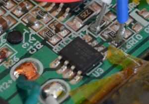 Cuando una entrada para el puente H es conducida alto, el motor irá en una dirección. Cuando la clavija de entrada es impulsado por alta, el motor viajará en la dirección opuesta. Tenemos que soldar cada entrada a un PWM correspondiente de la haba. Directamente a los pines de soldadura puede ser riesgoso porque la tensión del cable podría romperse un cojín o un alfiler, así que si un resistor está conectado a un pin, suelde la conexión para que en su lugar, o utilizar el alambre de soldadura.