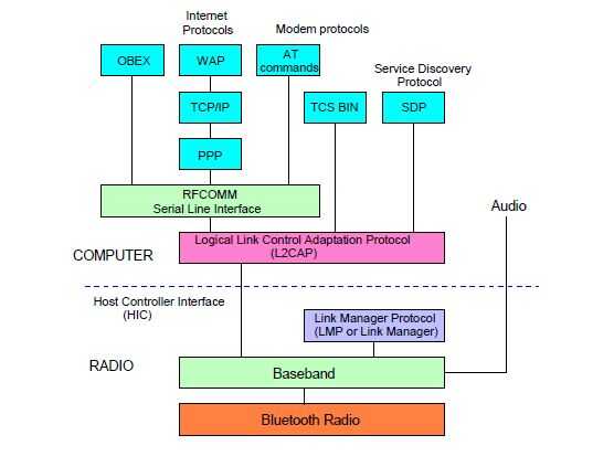 • Host controlador de interfaz – permite interacción de control con el hardware de Bluetooth