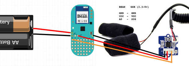 2. soldadura el sensor de la gsr a la haba como se muestra en el diagrama.