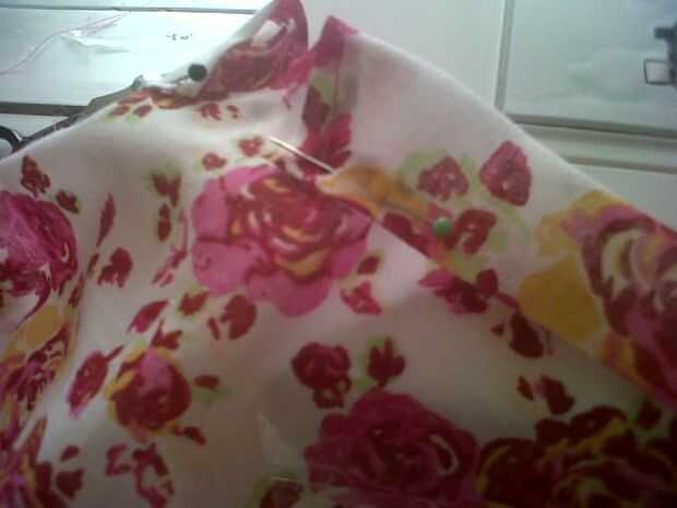 a partir de la apertura, cuidadosamente doblar el borde superior para formar el canal de lazo. Prender como doblan. Puede pulsar el canal, si lo prefiere que se ven, pero quería el escote para ver como con volantes como sea posible. Coser el canal cerrado lo más cerca del borde inferior como sea posible.