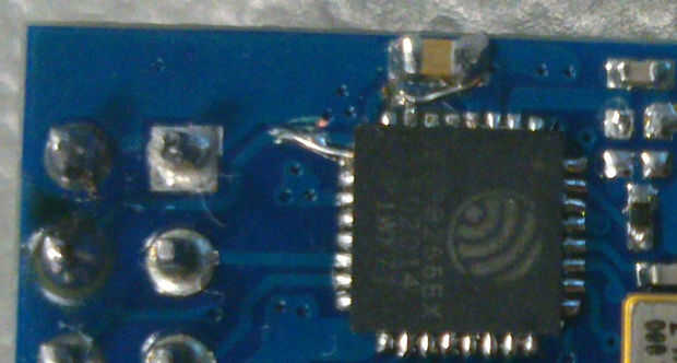 Porque sólo necesitaba una conexión I2C pensé que sería interesante tomar un módulo ESP-01 y modifíquela. J esto se describe a continuación, pero si no quieres hacer la modificación también puede usar un módulo diferente que todos los pernos hacia afuera, como el ESP-07. Si se decide por un módulo de stock, no olvide atar el pin CH_PD a Vcc.