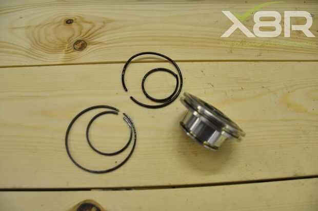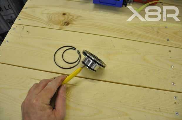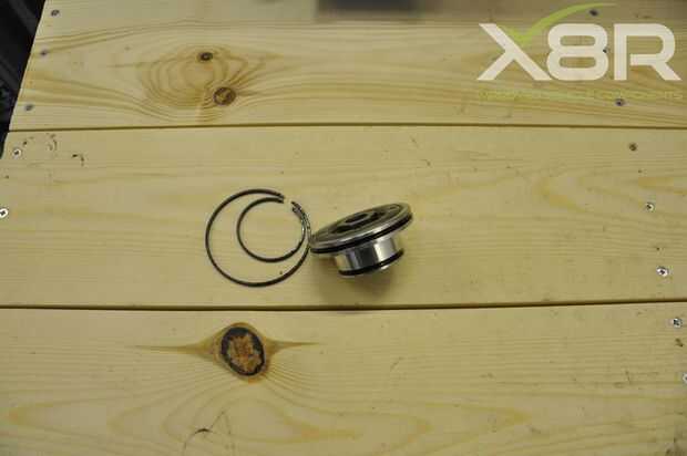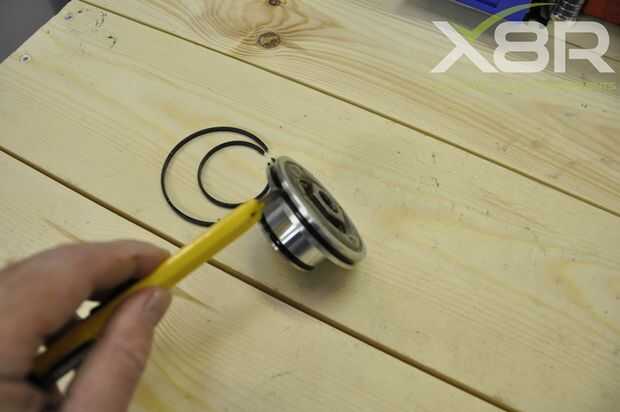 • Quitar sellos de OEM de ambos pistones, cada pistón tiene dos surcos; en cada ranura 2 sellos, sellos de 4 en total en cada pistón. Retirarlos cuidadosamente con una cuchilla afilada. Una vez quitado el pistón debe tener sellos ni restos del sello en el pistón, ranuras limpias. Tomar esta etapa completa lentamente asegurándose de no dañar el pistón.