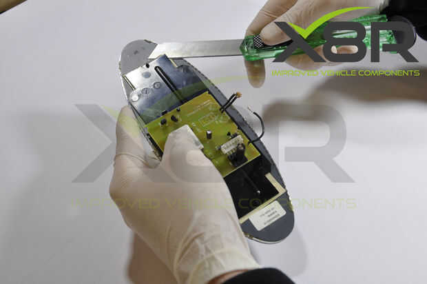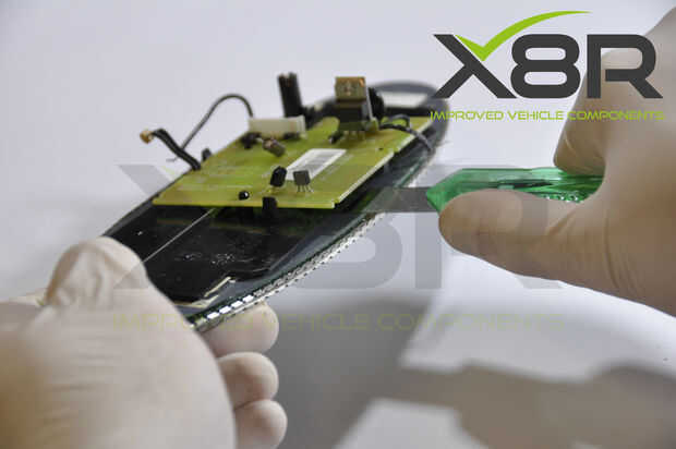 • Con una hoja larga, separar la placa de circuito incluyendo plástico panel posterior de la parte posterior del vidrio espejo