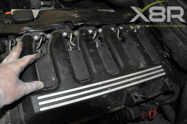 -Quitar cubiertas de goma en el colector de admisión (estos necesitan quitarse para tener acceso a todo distribuidor pernos)