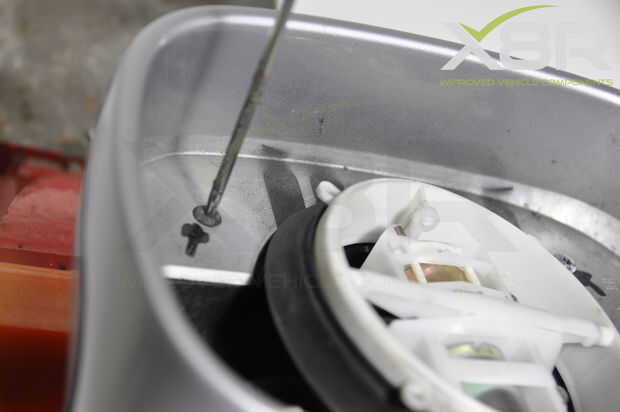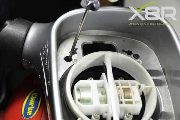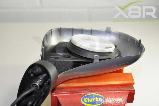 Colocar la tapa del espejo trasero, el eje de la ranura en la tapa asegurándose de que las lengüetas de la tapa se alineen.