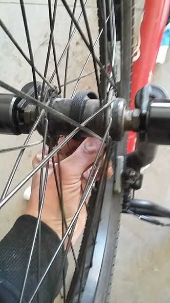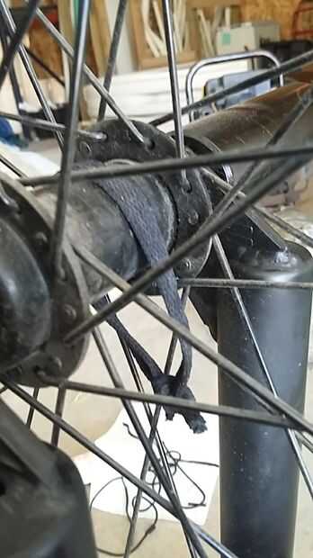Qué es, cortar un cordón suficientemente largo para envolver alrededor de su eje de la rueda con una pulgada o pulgada y media habitación para colgar. No quiere atarla ajustada, o incluso cómodo. Desea una suelta suelta. Pero también no demasiado floja eso él puede enredarse en los radios de la llanta.