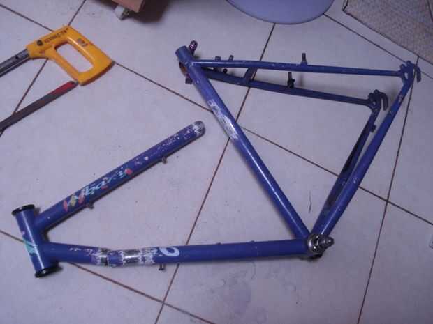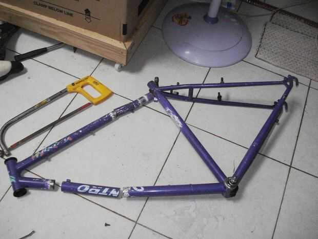 Cortar el marco MTB en uno más pequeño.  Articular el marco en más pequeño.