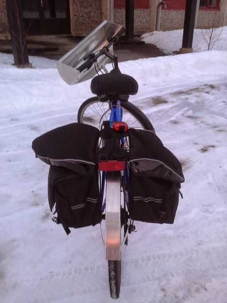 He trabajado en Noruega por un tiempo y es fue muy frío algunos días. Así que diseñé un parabrisas para las manos, trabajó muy bien :) Pero no paró ahí, quería hacer más. Así que hice un guardabarros trasero para. Y tengo más proyectos (grandes) en la tubería sobre bicicleta :)...