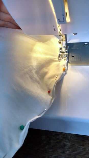 - PIN y coser, dejando un espacio lo suficientemente grande como para pasar a su forma de almohada/almohada. Cosí relativamente cerca del borde (aproximadamente 1/4" lejos) así que tengo la tela extra para acomodar el espesor de mi forma de almohada.