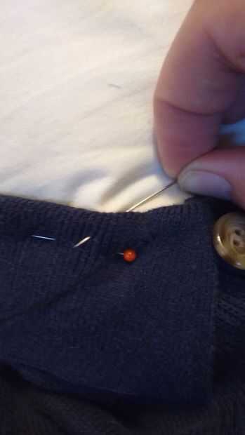- Coloque la cabeza en el cuello de la camisa por coser a mano.
