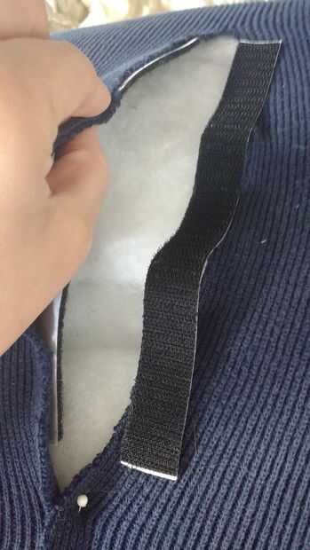 - Por último, coser las aberturas juntos en la parte inferior (debajo de donde el cierre de velcro cubierto) para que sea sólo un 16" de apertura (en lugar de toda la espalda como una abertura).