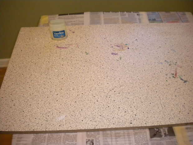 En primer lugar, prepare el apoyo que se utilizará para construir las hojas. Estoy usando un pedazo de madera contrachapada, laminada con top de formica, con una generosa cantidad de vaselina, untadas todo. La vaselina será clave para conseguir las hojas de la parte superior.